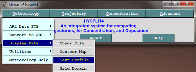 - The first step is to determine the mixing depth at the time and location of the tracer release. Go to the main menu and select the Meteorology / Display Data / Text Profile menu tab. This will call a program to read the values from the meteorological data file at that point and time and write the information to a text file.
