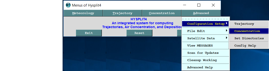 Now press the Advanced / Concentration Setup / Concentration menu tab to open the namelist selection menu. Only two menus need to be changed.