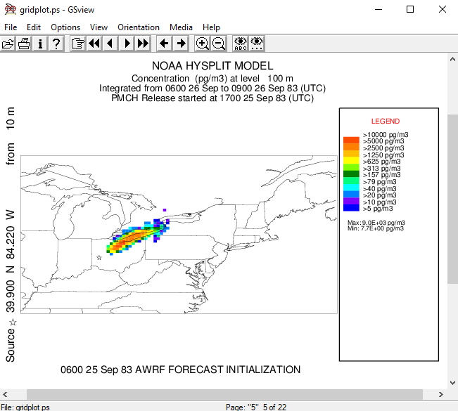 Do not proceed with this section unless the previous section has been completed and you have created two different output files in the working directory for CAPTEX release #2: hysplit2.bin with 3-hour average air concentrations and PARDUMP with all the particle positions every 3 hours.